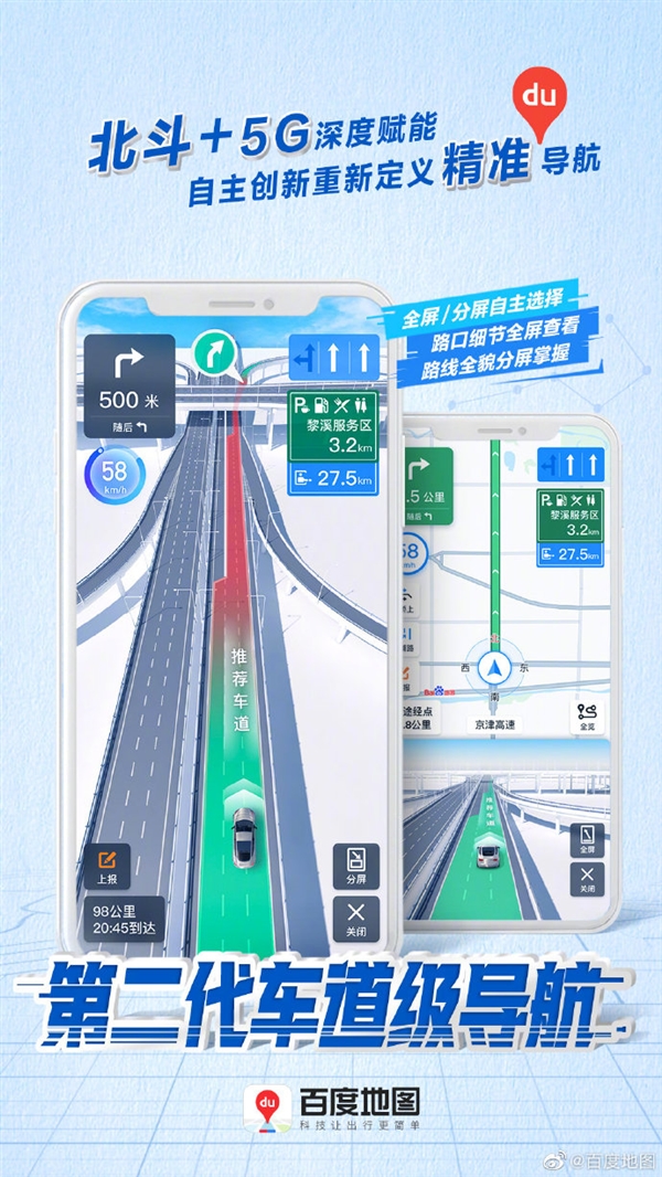 12月23日,百度地图宣布,第二代车道级导航正式上线!北斗+5G深度赋能,号称重新定义极致精准!据了解,在实现全程车道级导航效果的基础上,第二代车道级导航全面升级最优车道推荐、全/分屏动态导航框架、危险场景护航提示等优势功能。
