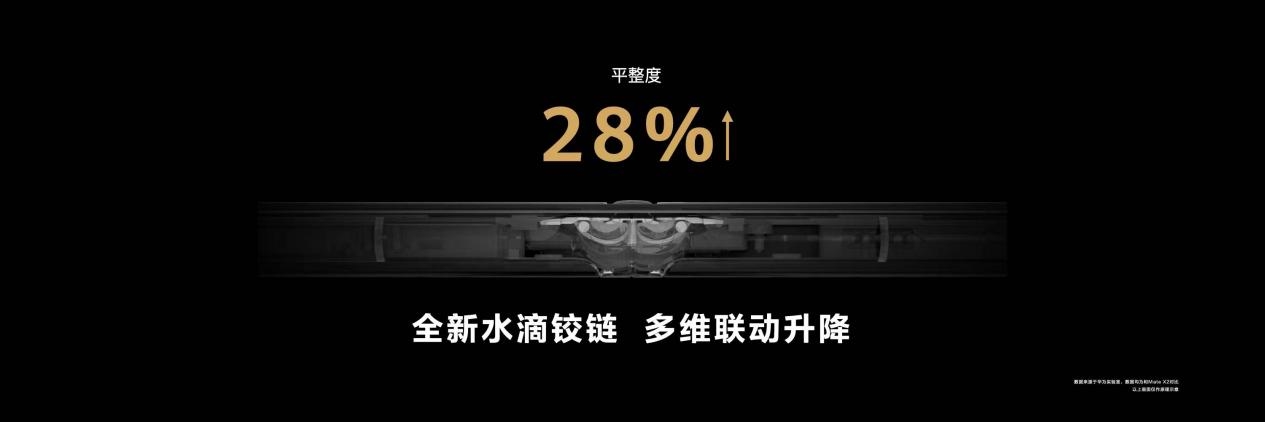 华为P50 Pocket在折叠技术上,实现了新一代水滴型铰链,可以让屏幕下方的多维联动升降展开时结构抬升,折叠时结构回落,实现完美的无缝隙折叠形态,并且几乎完美隐藏了折痕。