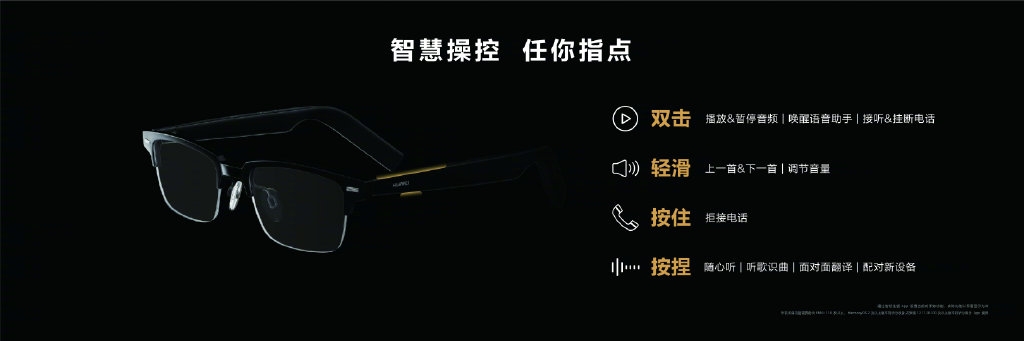 12月23日下午,华为在冬季旗舰新品发布会上推出首款搭载HarmonyOS的智能眼镜。光学镜款1699元,太阳镜款1899元,12月23日下午18:08分全线开售。外形方面,华为智能眼镜采用可拆前框设计,10秒拆装。除了波士顿框(复古圆框)、惠灵顿框(经典方框)和飞行员框(双梁)三个基本框型,还加入DFH计划引入更多款式。硅胶鼻托,尼龙镜腿,佩戴舒适。