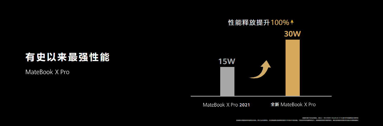 华为MateBook X Pro2022款使用全新的CPU,在高能模式下TDP最高可以达到30W,日常省电流畅,高性能使用时超薄机身也能带来强劲性能表现;它配备60Wh容量大电池,本地1080P视频可连续播放9小时,更配备90W小巧超级快充充电器,充电15分钟约可办公3小时,并支持部分华为手机、平板进行超级快充,出差时能轻装上阵,各个设备都享受快充体验。