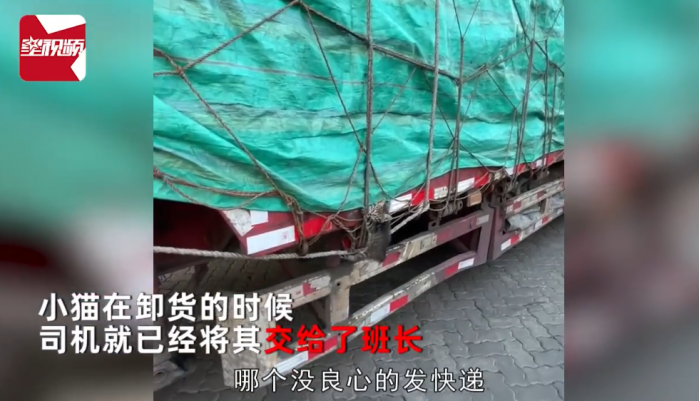 拍摄视频的货车司机表示,在掀开篷布后,发现小猫咪旁边就是一个被挤压变形的快递盒子,怀疑猫应该是这个盒子的缝隙中逃出来的。