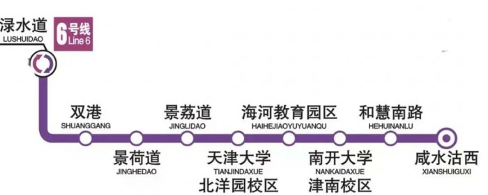 天津地铁6号线二期线路是天津市首条全自动运行线路。正线全长约14.39km,设车站9座,与既有6号线在渌水道站换乘,远期与 8 号线一期贯通运营,途径河西、津南两个行政区,6号线二期开通后将有效方便海河教育园师生和津南咸水沽镇、双港新家园等地居民出行,促进津南区和中心城区协同发展。