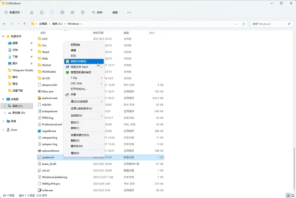 从 Windows 11 开始,复制文件或文件夹的路径变得更加容易。右键菜单现在默认包括“复制文件路径/复制文件夹路径”选项。这样,你只需要右键点击一个文件或文件夹,然后点击“复制文件路径”,就可以将其粘贴到另一个应用程序或对话框中,而无需手动浏览位置。
