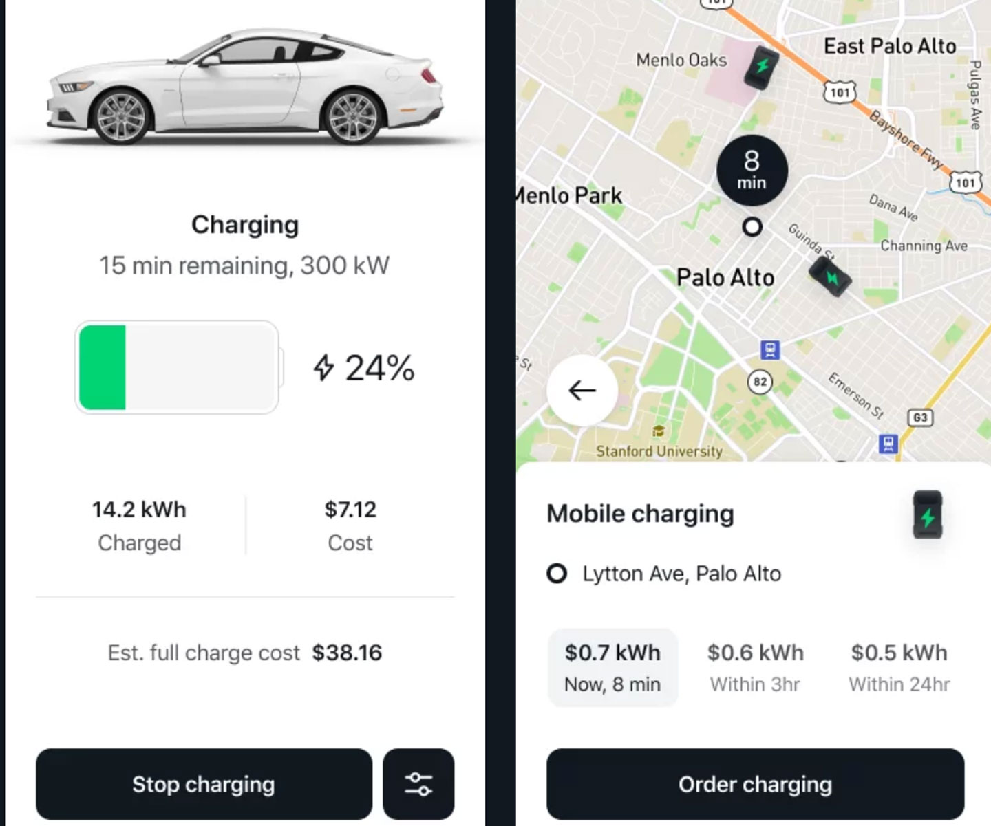 L-Charge移动充电站将使用一个应用进行调度,这让用户可以选择立即、几小时内或24小时内调用移动充电器。根据电动车主要求移动充电器出现的速度,千瓦时费率将有所不同。在应用的截图中,移动充电站立即出现的费率为每千瓦时7美分,三小时内出现的费率为每千瓦时6美分,而24小时内出现的费率为每千瓦时5美分。
