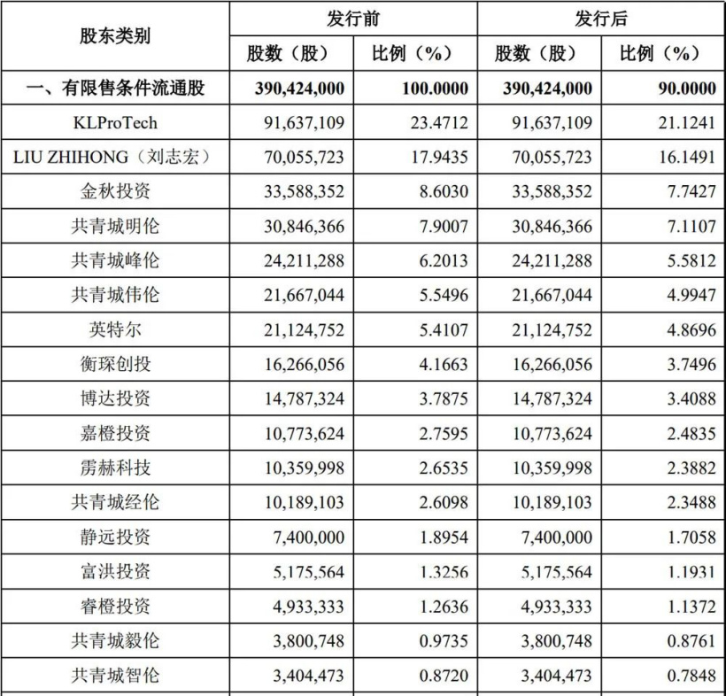 此外,刘志宏和共青城峰伦及 KLProTech 签署《一致行动协议》,能够支配共青城峰伦持有的发行人 6.2013% 股份、KLProTech 持有的 23.4712% 股份,合计控制了 47.6160% 的股份。
