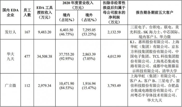 ▲ 概伦电子、华大九天、广立微境内外收入占比与前五大客户情况