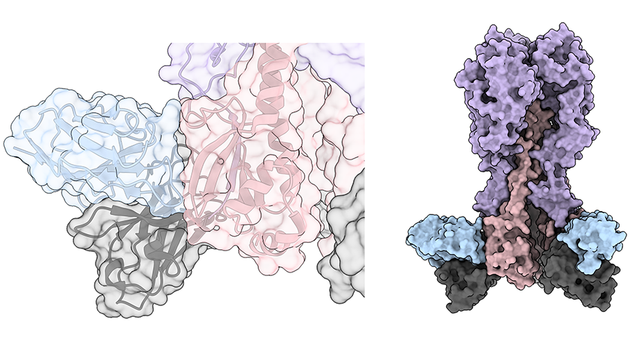 参与者血液中的许多抗体是已经知道可以识别HA“头部”或“茎部”的抗体。但有一组新的抗体脱颖而出;这些抗体与“茎部”的最底部结合,靠近每个HA分子与流感病毒膜的连接处。
