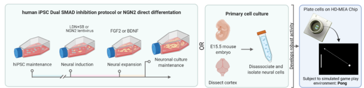 这些脑细胞,并非取自活体,而是从啮齿类动物胚胎皮质细胞或人体诱导多能干细胞 (hiPSC) 培育而成的,两种来源皆可。培育出的脑细胞能够在营养充分的环境里裂变生长,并且能够在体外环境发展出生物神经网络 (BNN)——这也是人类在体外环境所能够培养出的,最为接近智慧生物大脑工作方式的生物神经元结构。