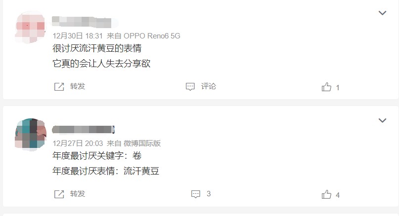 无论是贴吧、微博、还是B站,你总能在评论区里,找到这个“越看越上头”的表情。其风靡程度,堪比曾经红极一时的“滑稽”表情。不过,网友对“滑稽”表情,大多持幽默、好玩,无所谓的态度;但对于“流汗黄豆”,不说是“极度反感”,那也算是“深恶痛绝”了。