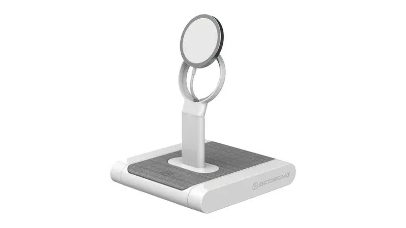 Scosche正在推出 BaseLynx MS,它旨在与BaseLynx系统整合,实现多设备充电。BaseLynx MS可以容纳一个MagSafe充电器,并允许以直立的姿势充电,而且由于它使用了苹果自己的技术,它的充电功率为15W(iPhone 12和13 mini型号为12W)。