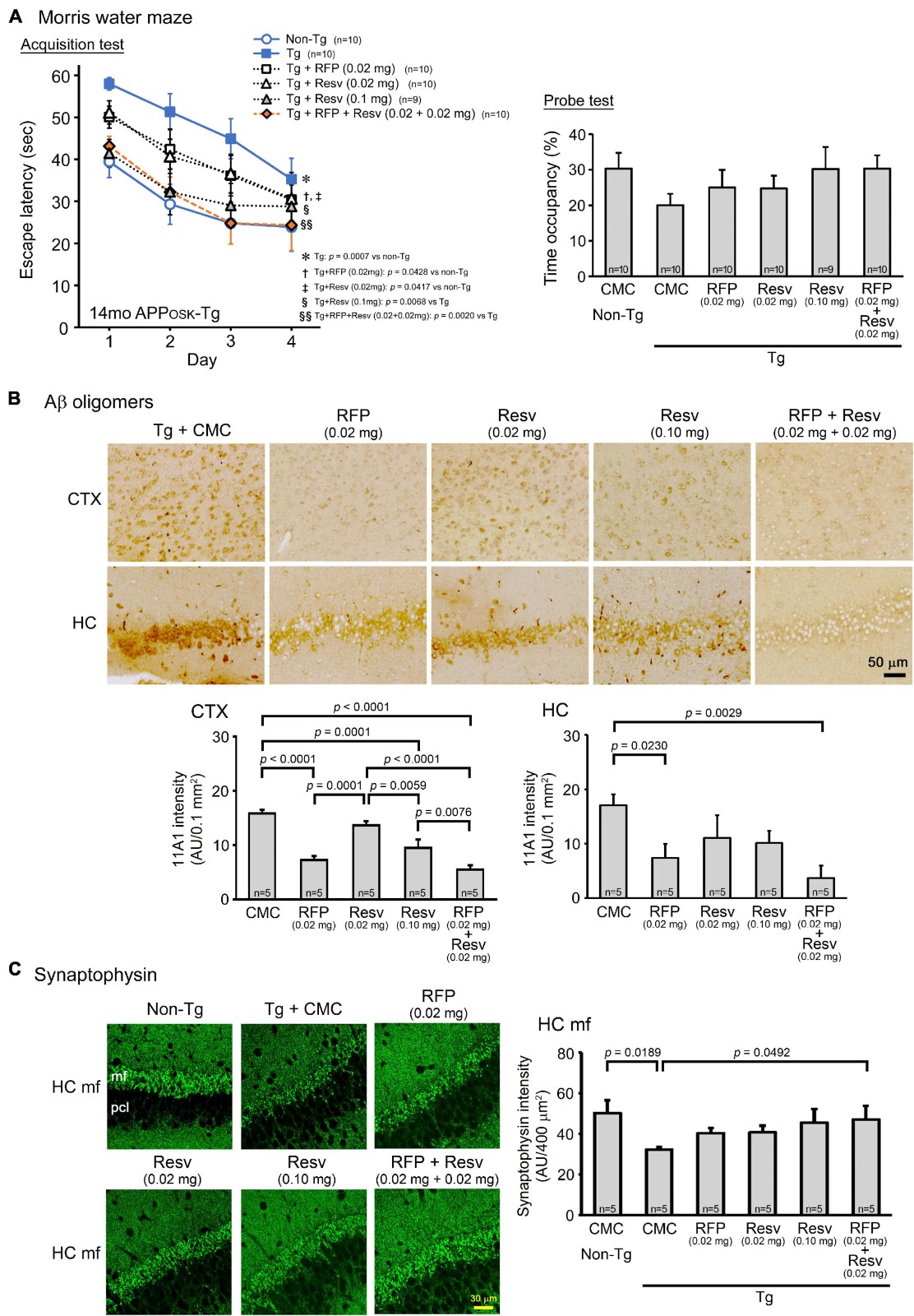 联合治疗也没有显示出肝脏损伤的迹象,并且比单独提供每种药物更有效地防止神经变性。这项新研究的首席调查员Takami Tomiyama说,与通常的抗生素相比,研究中使用的利福平的剂量很小。而且,当与白藜芦醇结合时,它可以作为一种长期预防疗法安全地提供给人类。