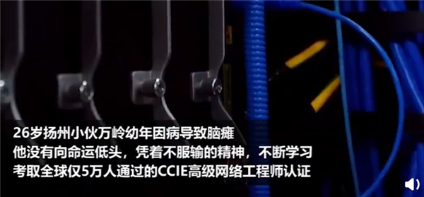幼年因病导致脑瘫,行动不便,语言表达困难,江苏扬州高邮26岁小伙万岭却从未向命运低头。他凭借不服输的精神,刻苦学习,最终考取了全球仅5万人能通过的CCIE高级网络工程师认证。