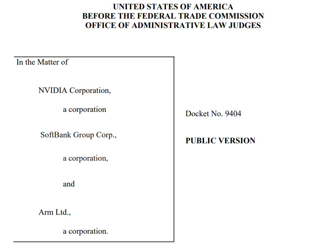 2021 年 12 月 2 日,FTC 宣布起诉阻止英伟达收购 Arm。FTC 称,其有理由相信英伟达、软银和 Arm 执行的并购协议违反美国联邦法案,因此对该并购案提出诉讼。