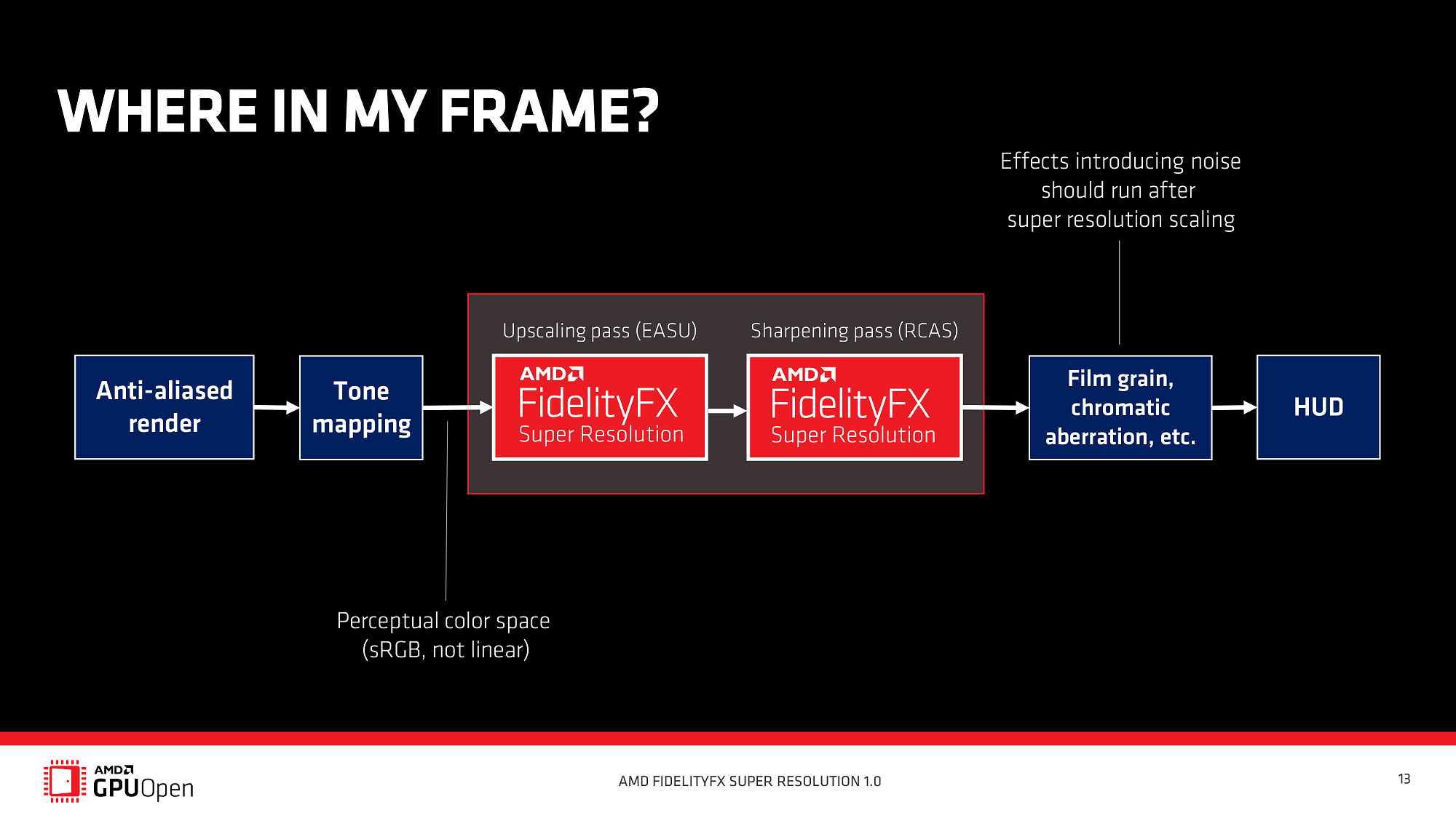 作为开源 FidelityFX 套件的一部分,游戏开发者能够充分利用 AMD 的着色器程序,使之作为图像渲染管道的其中一个步骤,自由地将图像放大算法集成到他们的游戏中。