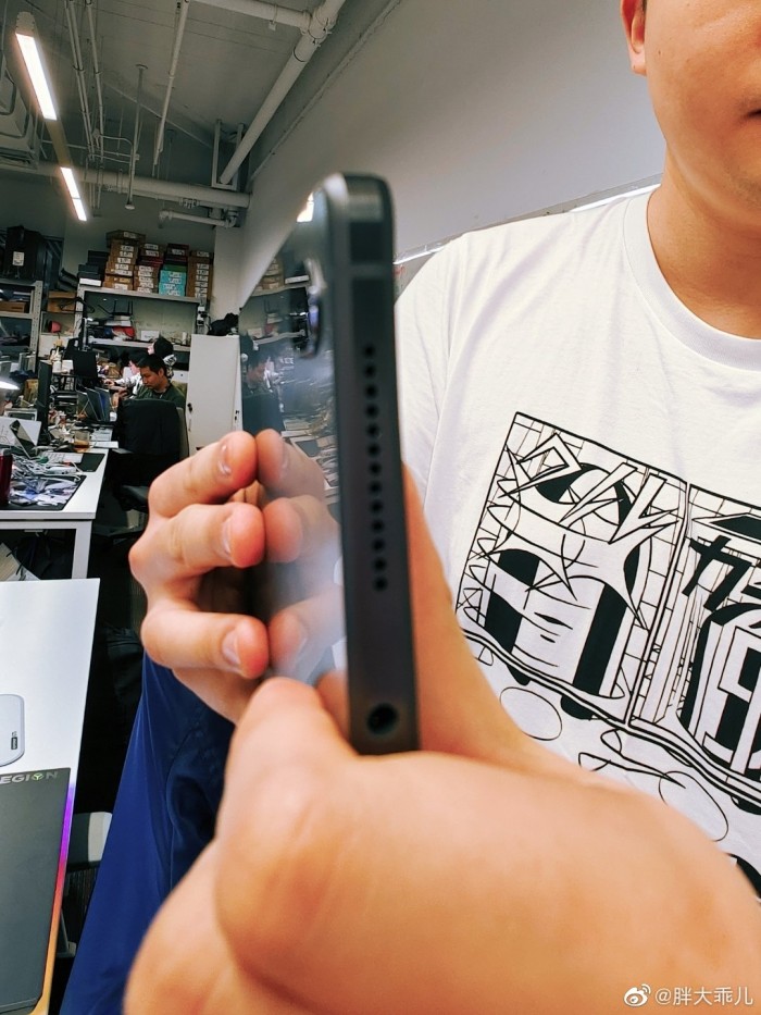 细节方面,机身背部印有“LEGION”和“Lenovo”Logo,“极为先进的”3.5mm耳机插口位于机身底部中间位置。