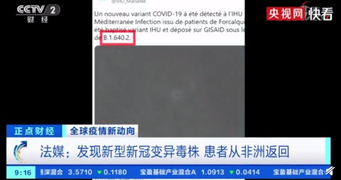 据央视报道称,法国马赛地中海传染病医疗和教学研究所在去年年末发现了一种被称为“IHU”新型新冠病毒变异毒株,这种毒株包含46个突变点,最早是在一位从刚果(布)返回法国的病人身上发现的。目前已发现了12例这种新型毒株的感染者,但由于样本较少,暂时很难评估其传染性和危险性。世界卫生组织已经将这一毒株列为接受观察的新冠变种(视频)。