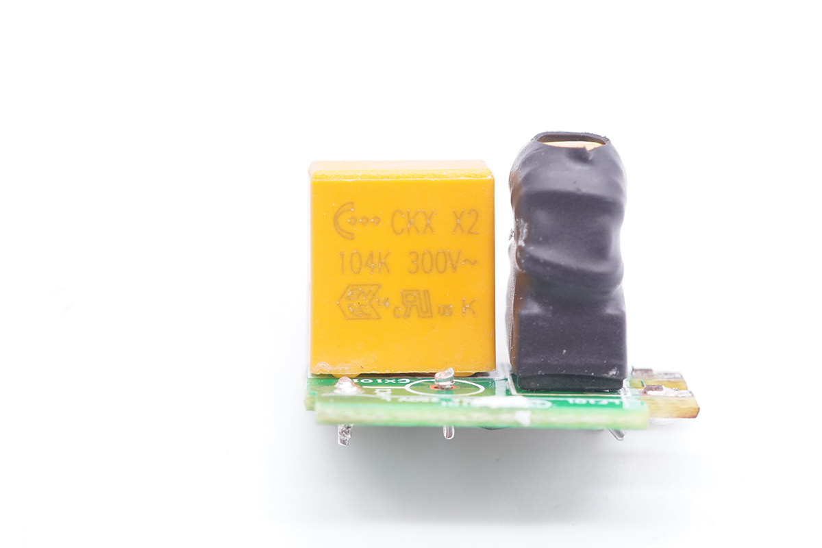 将小板拆下,正面设有保险丝、共模电感和安规X电容。