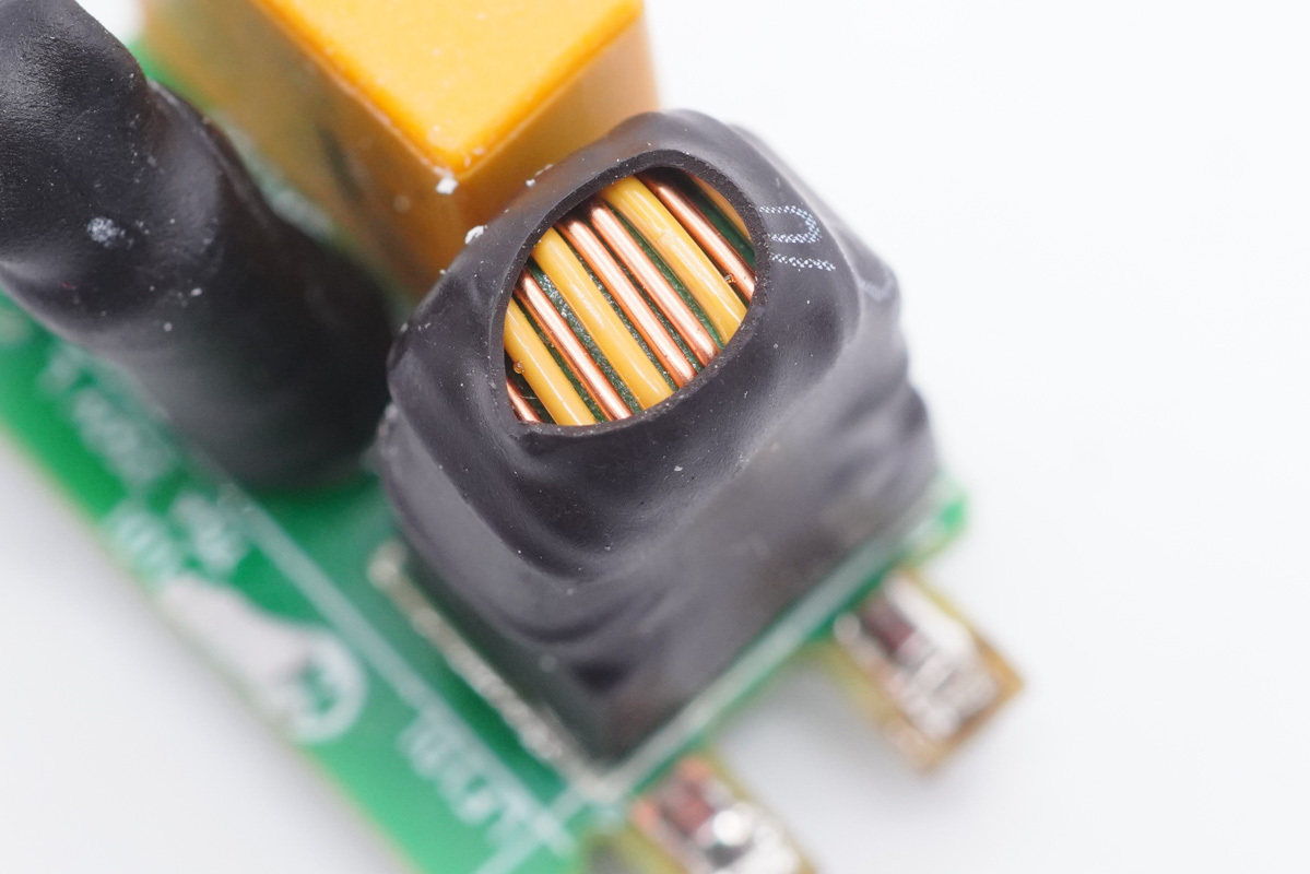 共模电感用于滤除EMI干扰,本身也是外套绝缘管保护。