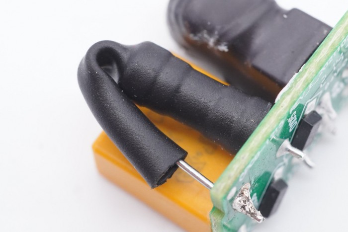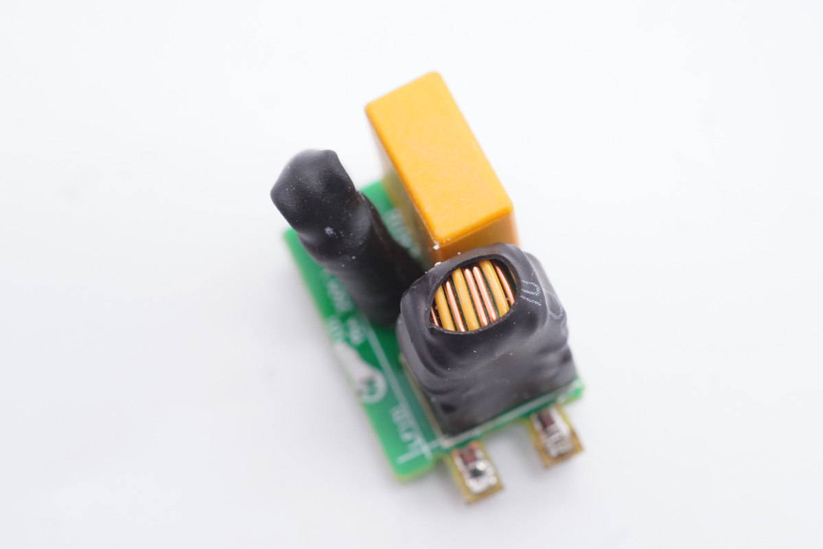 PCBA模块包裹金属板进行散热,靠近输入端处缠绕胶带。