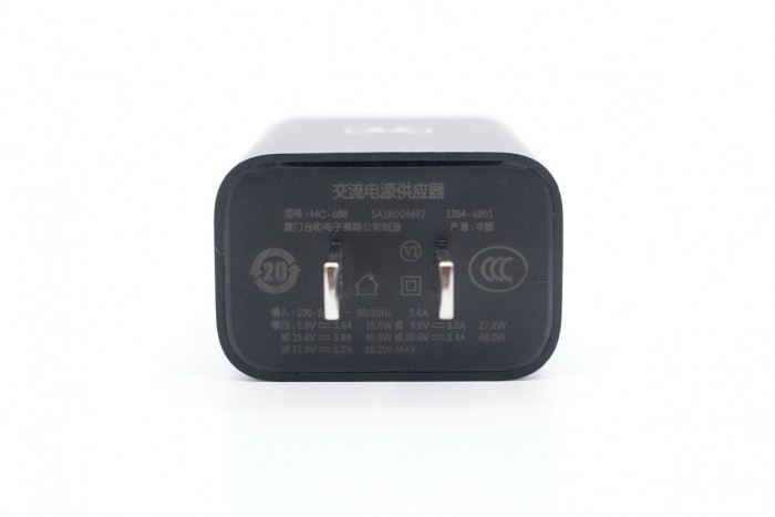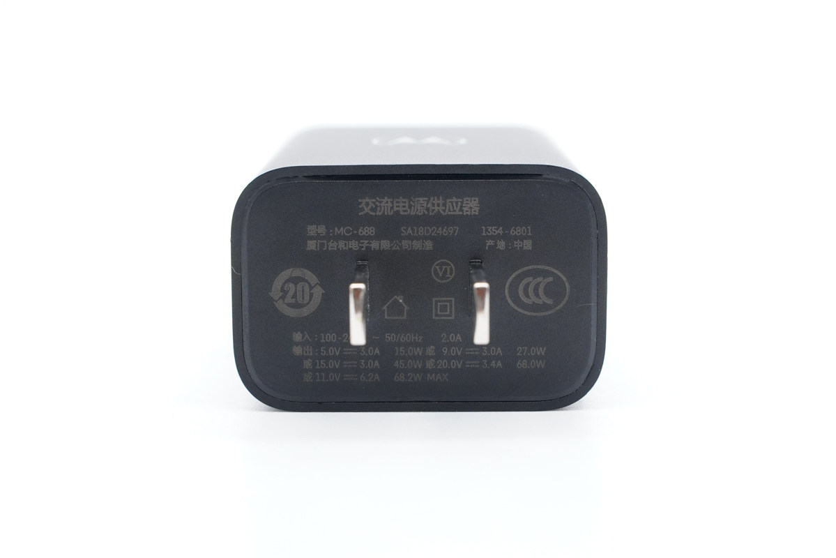 另一面有68字样,表明这款充电器可以以68W持续输出。