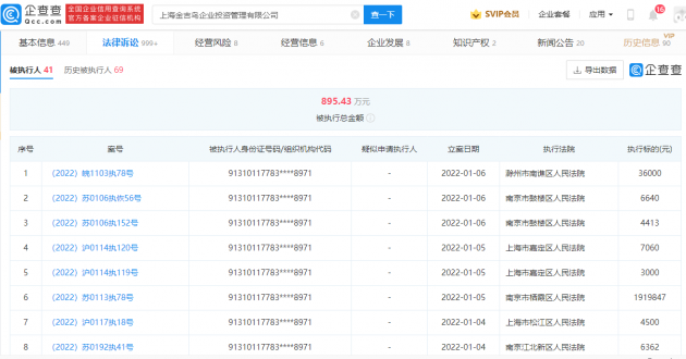 企查查APP显示,该公司当前有41条被执行人信息,50条失信信息,被执行总金额达895.43 万元。