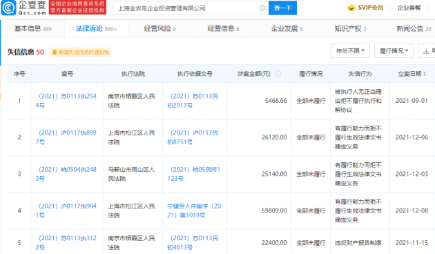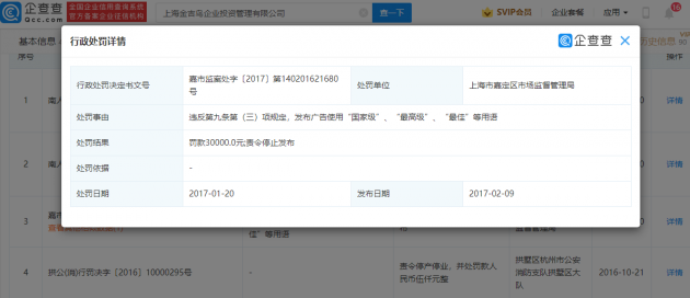 企查查APP显示,金吉鸟关联公司为上海金吉鸟企业投资管理有限公司,该公司成立于2005年12月,对外投资企业数量近50家,其中主要分布在江苏、浙江、上海等地。2017年曾因广告使用“国家级”、“最高级”、“最佳”等用语,被罚3千元。