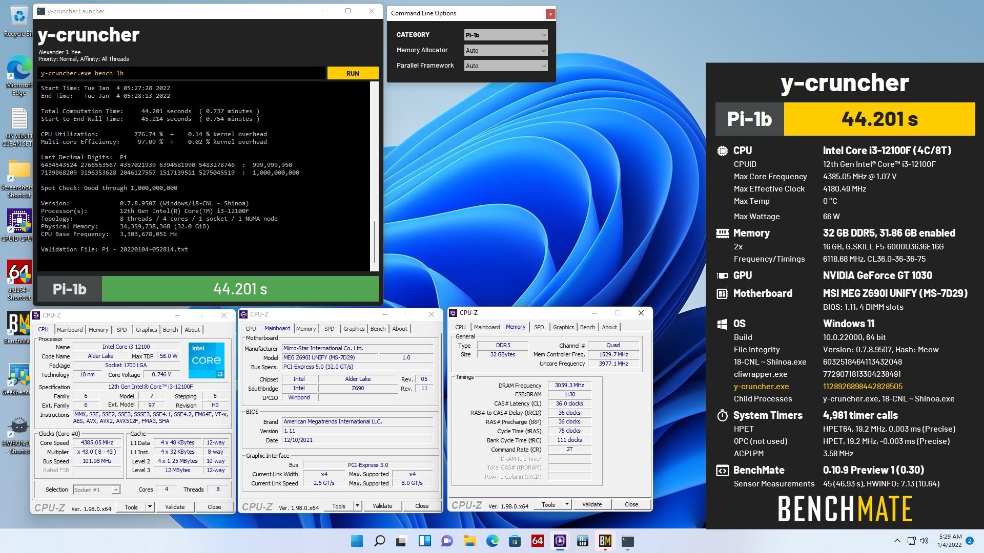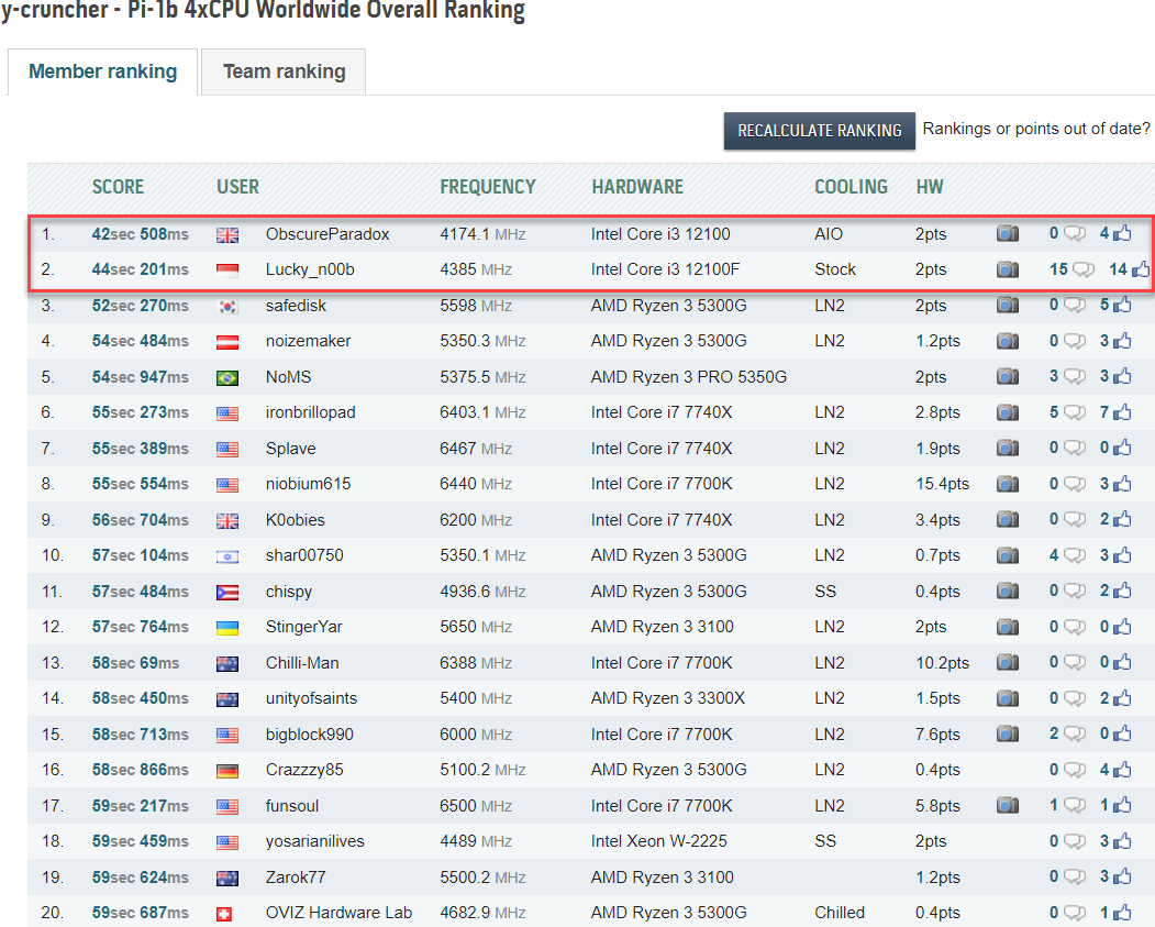 Y-Cruncher (PI-1B)成绩为44.201秒,成为史上最快的四核处理器,只比水冷散热器的i3-12100慢了大约1.7秒钟,甚至超过了液氮超频到5.6GHz的锐龙3 5600G,而且快了几乎8秒钟,幅度达到了18%。