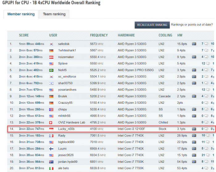 超频高手Alav Jonatha(LUCKY-NOOB)提前拿到了一颗i3-12100F,使用原装散热器,在默认频率下,搭配Z690主板、32GB DDR5-6200内存,进行了简单测试。