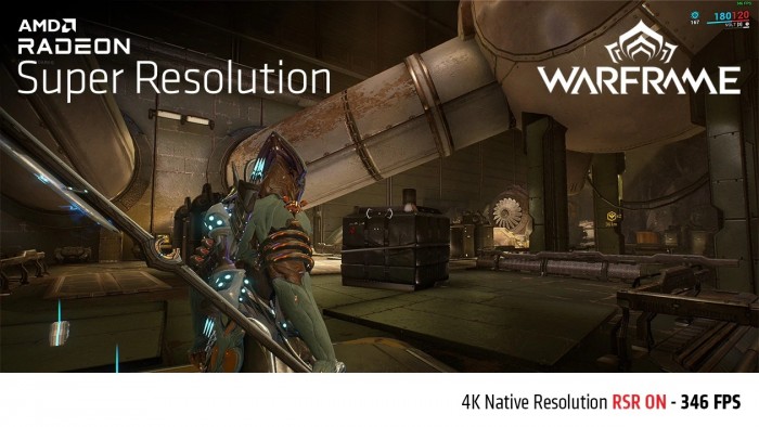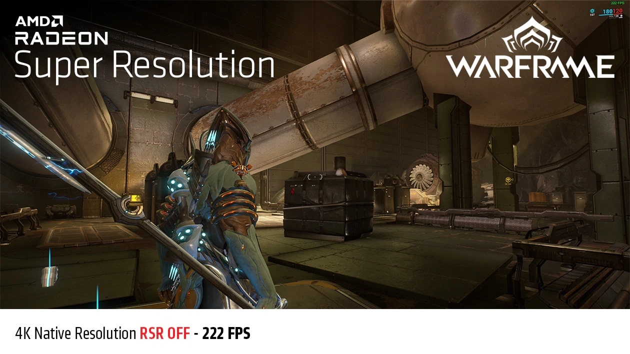 至于性能,AMD宣称最多可以提升70%,并举了《星际战甲》(Warframe)的例子,4K分辨率下,默认帧率为222FPS,开启RSR后可达346FPS,提升幅度为56%。