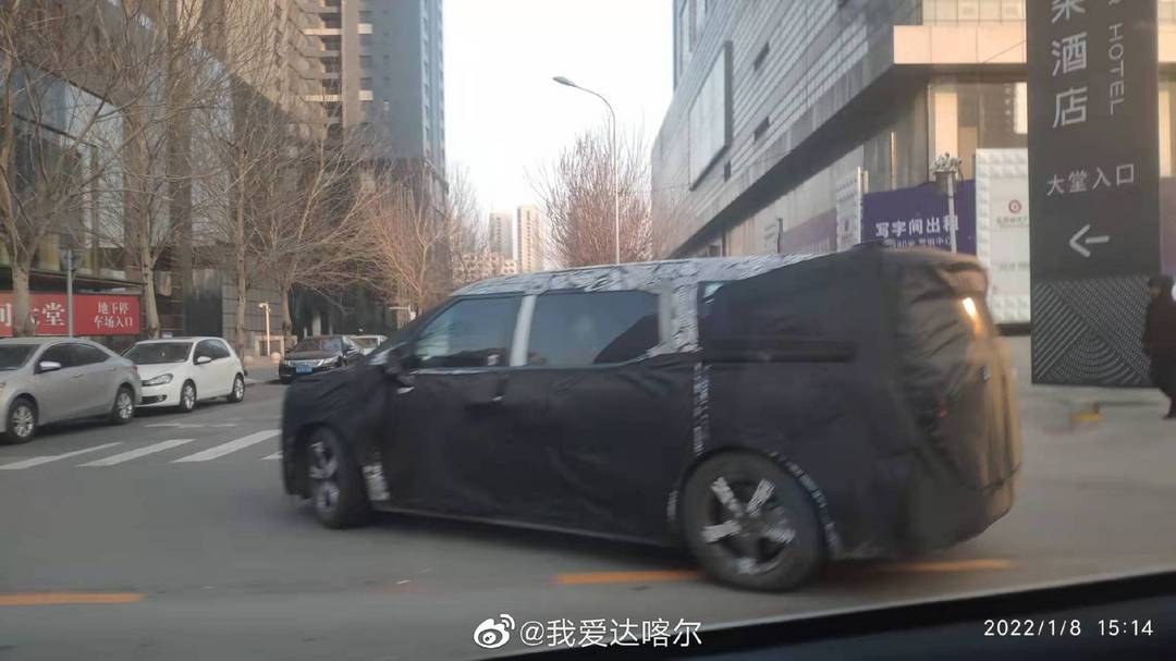 这辆路试车最大的特点就是修长比例搭配方方正正的车身轮廓,让我们对新车量产之后的空间充满期待。而从测试车离地间隙来看,这款定位与家庭使用的车型或许是个中大型MPV。