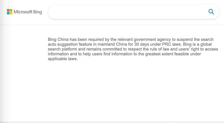 1月17日,Bing 在中国内地暂停“搜索自动建议”功能 30 天已结束。一个月前,微软 Bing 官方发布声明称,根据中华人民共和国法律,Bing 在中国内地暂停“搜索自动建议”功能 30 天。作为全球性搜索平台,Bing将持续致力于尊重法治与用户获取信息的权利,在遵守法律的前提下最大限度地帮助客户寻找所需信息。