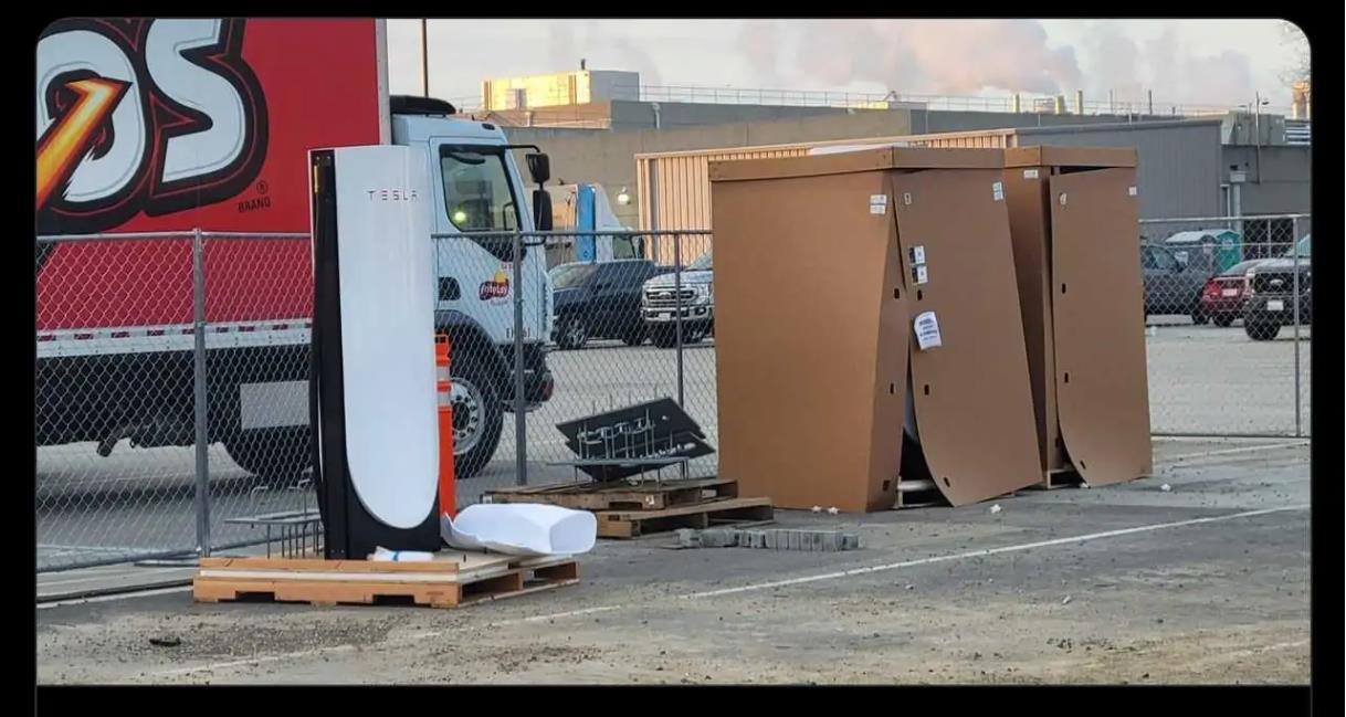 近日海外媒体曝光了一组特斯拉巨型充电器的最新照片,这是在食品企业菲多利(Frito-Lay)位于美国加利福尼亚州莫德斯托工厂拍摄的,此前该充电桩一直处于安装施工状态,如今终于露出了真面目。