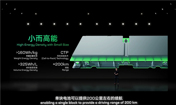 单块电池能量密度超160Wh/kg,续航200km,2块电池组合400km,3块则为600km,车主可根据用车需求自行选择“换电”电池数量,“加1块还是2块电”,服务车型覆盖A00、B、C级。