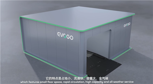 发布会上,宁德时代“EVOGO”换电站也正式亮相,具有3个停车位的面积,电池仓容纳48个换电块,自动换电时长,单块电池仅需1分钟。