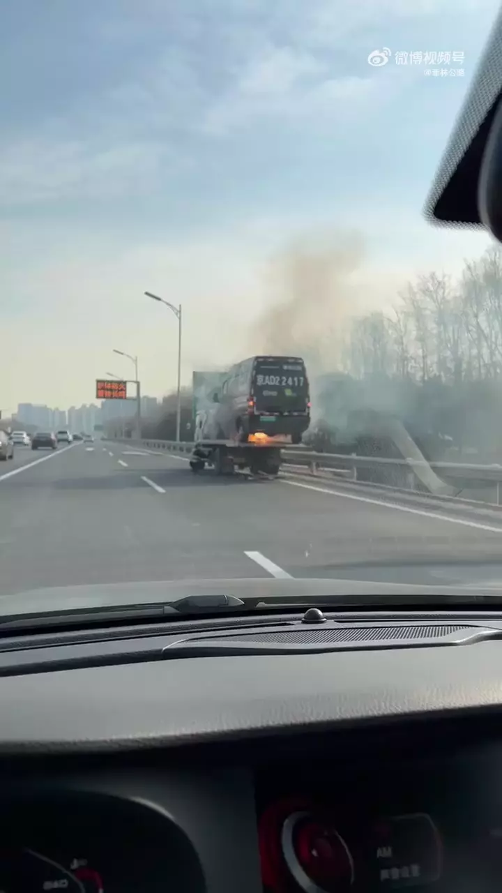 日前,网友上传的视频显示,一辆顺丰快递电动车,在高速上被拖车托运时,突然发生了起火自燃事故。 视频中,电动车底部的电池仓,正在往外喷火,明火伴随浓烟,火势有愈演愈大趋势,而司机正在紧急升起拖板,将车辆卸下避险,以免引燃拖车。