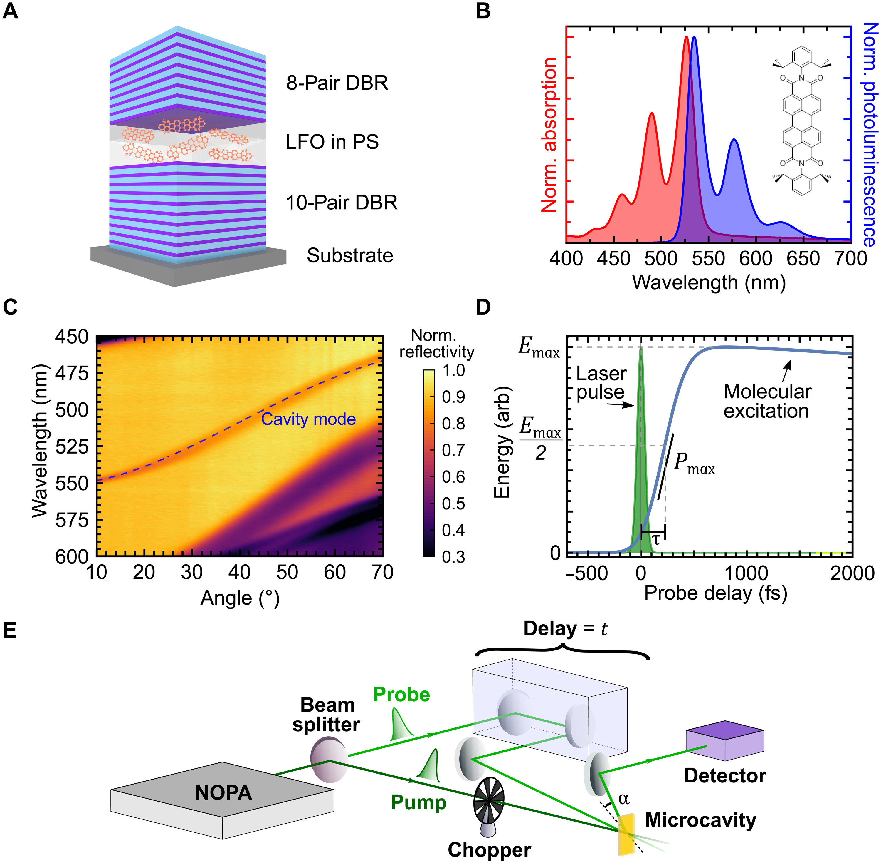 然后,该团队使用超快瞬时吸收光谱来测量染料分子是如何储存能量的,以及整个设备充电的速度。果然,随着微腔的大小和分子数量的增加,充电时间减少,证明了超吸收的作用。