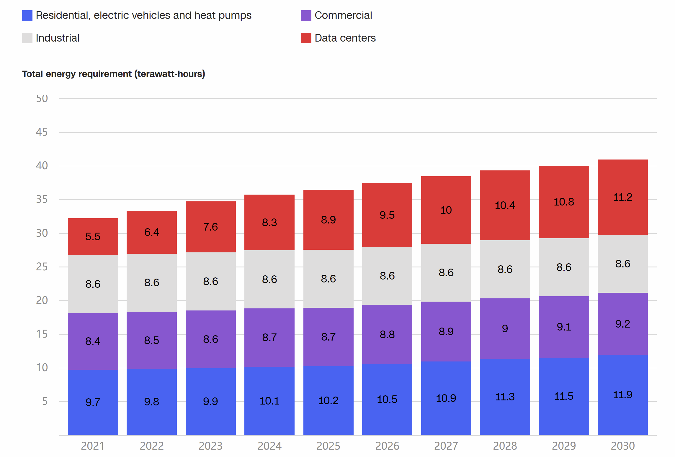 尽管有这种有利的环境,但爱尔兰的数据中心消耗了大量的电力,使它们的运作与该国雄心勃勃的气候目标相一致成为问题。根据国有电力运营商EirGrid的数据,到2021年,他们将消耗爱尔兰17%的电力。EirGrid指出,爱尔兰的数据中心非常需要能源,在过去的四年里,它们所需的电力相当于在电网上增加了50万个家庭。