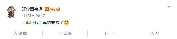 值得一提的是,在马筱强晒出照片后不久,博主@旺仔百事通 就表示,华为Petal Maps真的要来了。