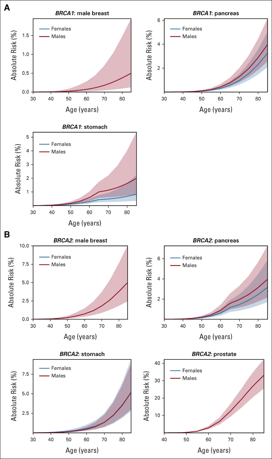 携带 BRCA2 突变的男性,在 80 岁时患上前列腺癌的可能性、是没有该基因变异的男性的两倍多(前列腺癌风险不受 BRCA1 突变的影响)。