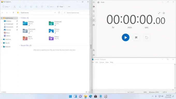 ● 微软更新了在 Snap 布局中调整应用程序窗口大小的体验,将相关的应用程序图标覆盖在半透明背景之上。使用抓取辅助功能抓取一些窗口,使用缓冲区调整抓取的窗口布局,并观察其他抓取的窗口在其应用图标的覆盖下失去焦点。