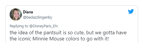 截至本周四,巴黎迪斯尼乐园的推文已经获得了数千条转发和回复。一些人愤怒地反对改变米妮的造型。一些人迅速指出米妮过去曾穿过两件式套装。而一些米妮的粉丝则对她的改变感到高兴。