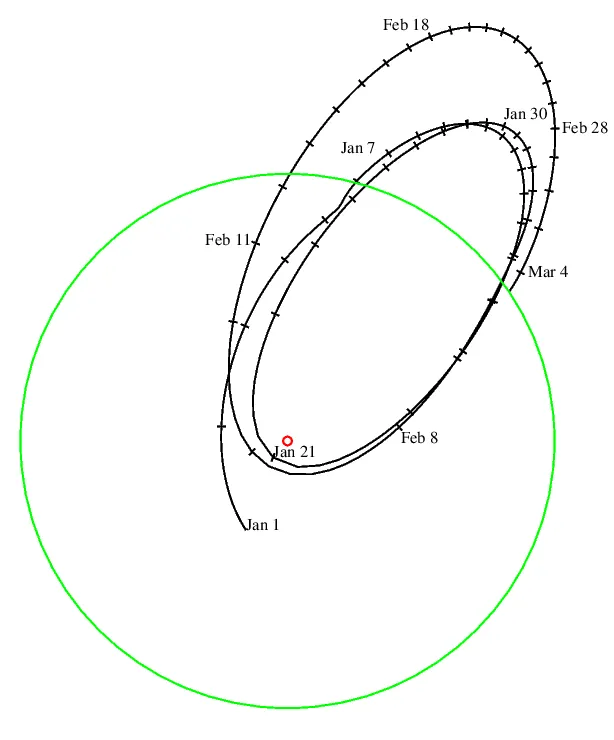 多年来,确定猎鹰9号的路径一直有点复杂。像这种第二级的太空垃圾可以吸收阳光并将其重新辐射到太空中。Gray称,这产生了一种柔和的力量将物体推离其路径,这使得难以预测它的长期走向。此外,该阶段在1月5日对月球进行了近距离的飞越,像这样的相遇所产生的引力可以稍微扰动轨道。“这有点像一颗台球在另一颗台球上弹跳。你确切地知道台球要去哪里,但一旦它被弹开,它可能会以一点稍微出乎意料的角度弹开,”Gray说道。