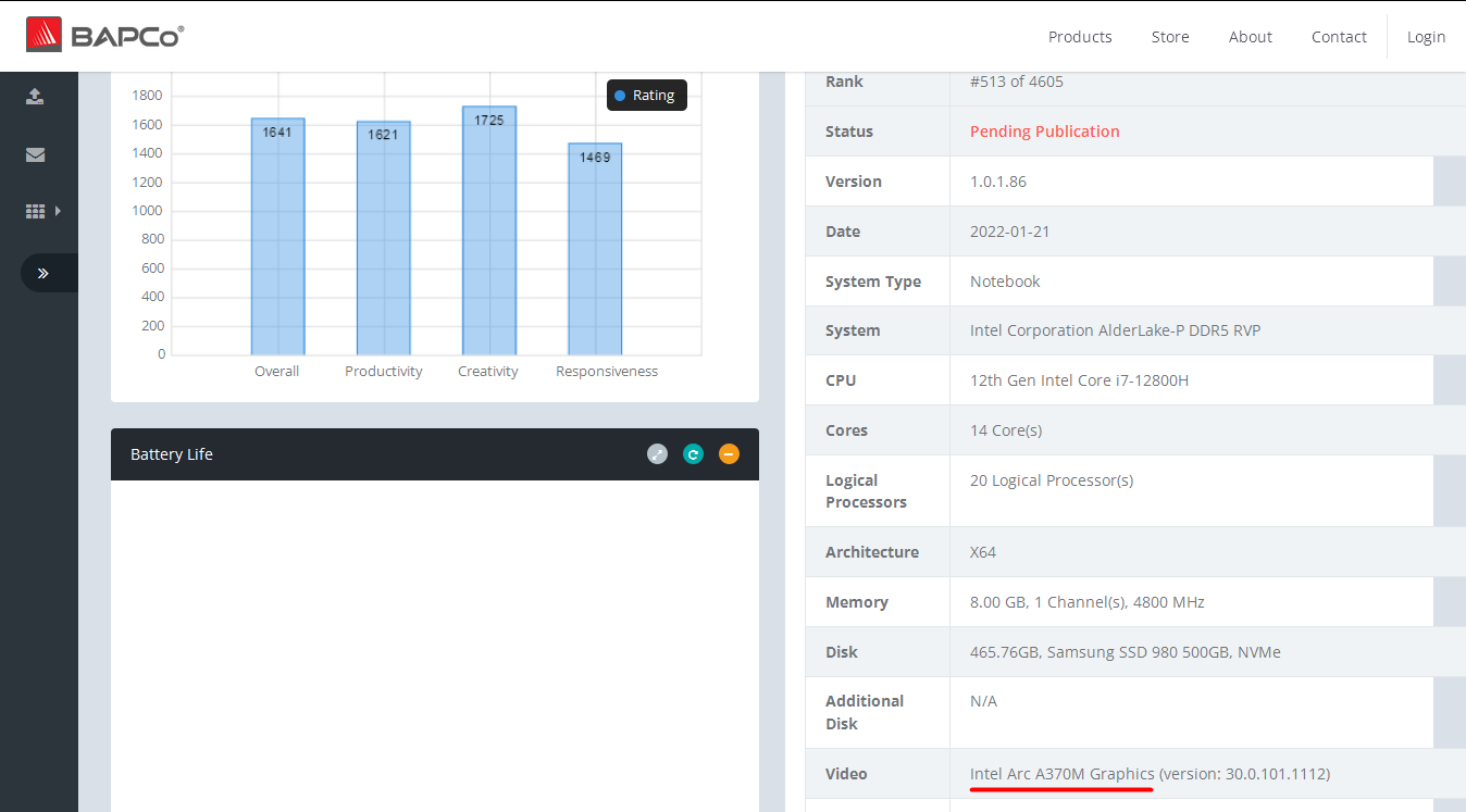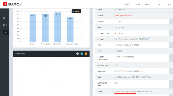 Intel Arc锐炫独立显卡什么时候来?不远了。Intel此前已经宣布,Arc显卡赢得了50多款笔记本、台式机设计,涵盖众多OEM品牌,本季度内开始推出。在跑分平台CrossMark,出现了Arc显卡中的高端移动版Arc A370M,来自未知厂商的某款笔记本,与之搭配的是12代酷睿i7-12700H 14核心处理器、单条8GB DDR5-4800内存、4K屏幕。