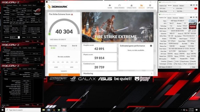 对比之下,我们快科技测试过的公版RX 6900 XT,3DMark Fire Strike Extreme默频跑分能够跑出27000分的GPU分数,超频到2.7GHz也不到30000万分。