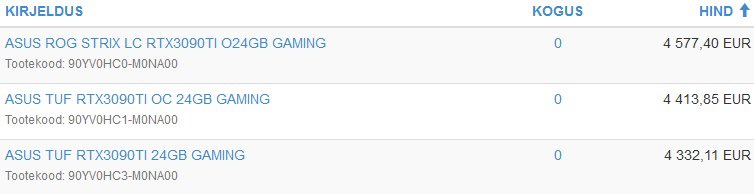 华硕TUF RTX 3090 Ti OC Gaming (90YV0HC1-M0NA00) - 4413.85 欧元