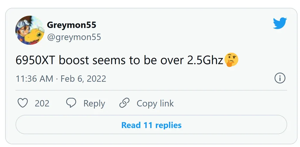 知名爆料人士 Greymon55 在最新推文中,又分享了关于 AMD Radeon RX 6950XT “RDNA 2 Refresh”显卡的新信息。他表示凭借着现有的 7nm Navi 21 XTXH GPU,AMD 对 AMD Radeon RX 6950XT “RDNA 2 Refresh” 公版设计进行了优化,不仅允许更高的稳定时钟频率,而且将超频规格推到 3GHz 以上。