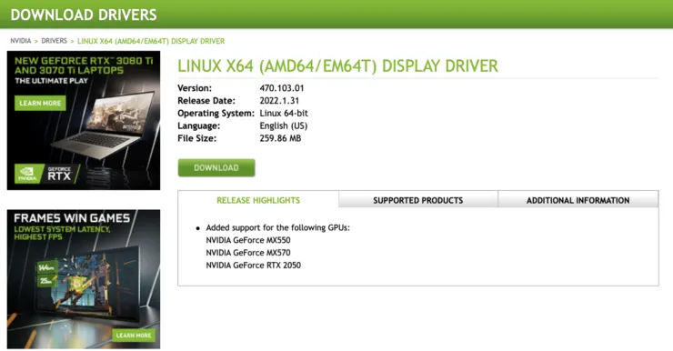 去年 12 月,NVIDIA 推出了 3 款移动 GPU:RTX 2050、MX550 和 MX570。其中 MX550 是 NVIDIA Turing 的变种,但 RTX 2050 和 MX570 和 RTX 3050 一样使用 GA107 内核。今天,适用于 RTX 2050、MX570 和 MX550 的新 Linux 驱动程序(470.103.01)已经发布,进一步改善兼容性和性能。