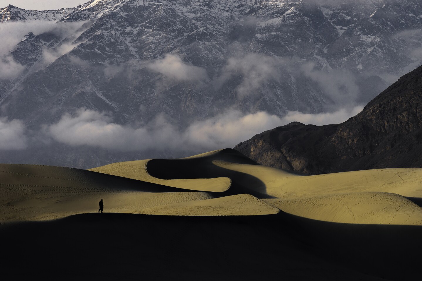 赢得冰岛最高奖项的是Viktor Einar Vilhelmsson拍摄的一张快照,画面上一个小小的身影被绑在悬崖边上,看着巨大的冰川落在地上。