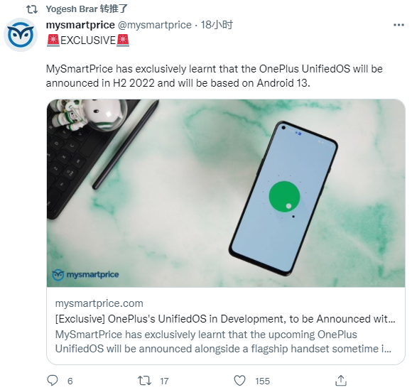 Yogesh Bara 透露,目前一加的 UnifiedOS 仍处于早期开发阶段,且有望于 2022 下半年发布。