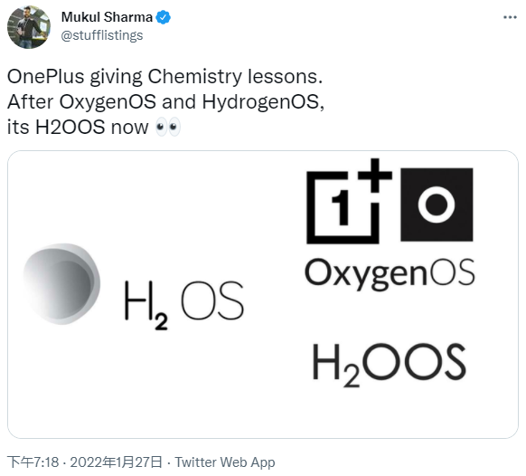 不过在之前的一条推文中,印度爆料人 Mukul Sharma 曾提到过 H2OOS 的名称。